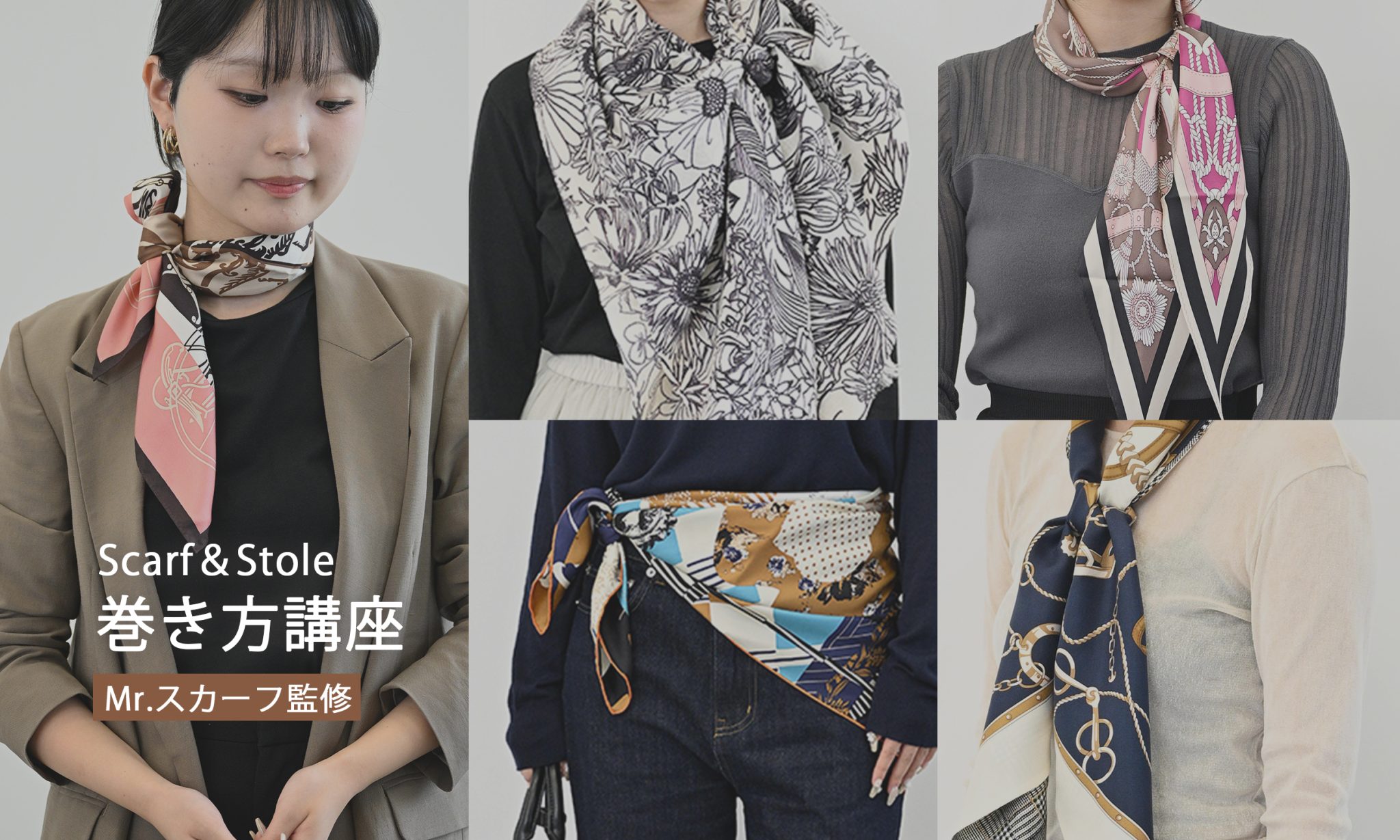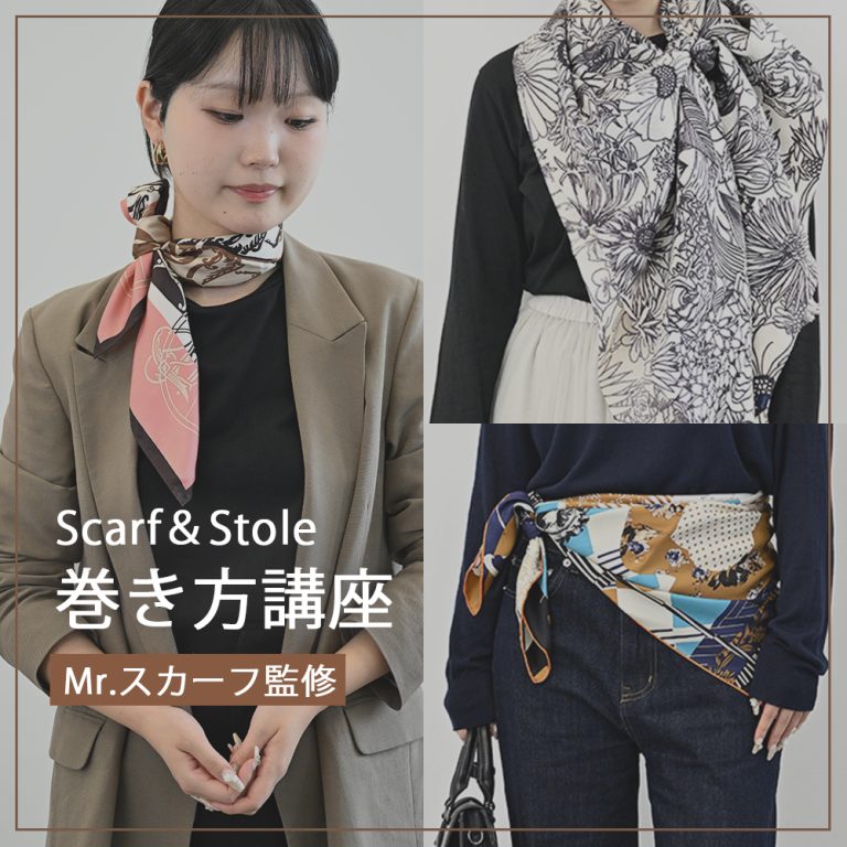 巻き方講座大人気講師“Mr.スカーフ”監修のもと、簡単に楽しめる巻き方アレンジをご紹介します。
