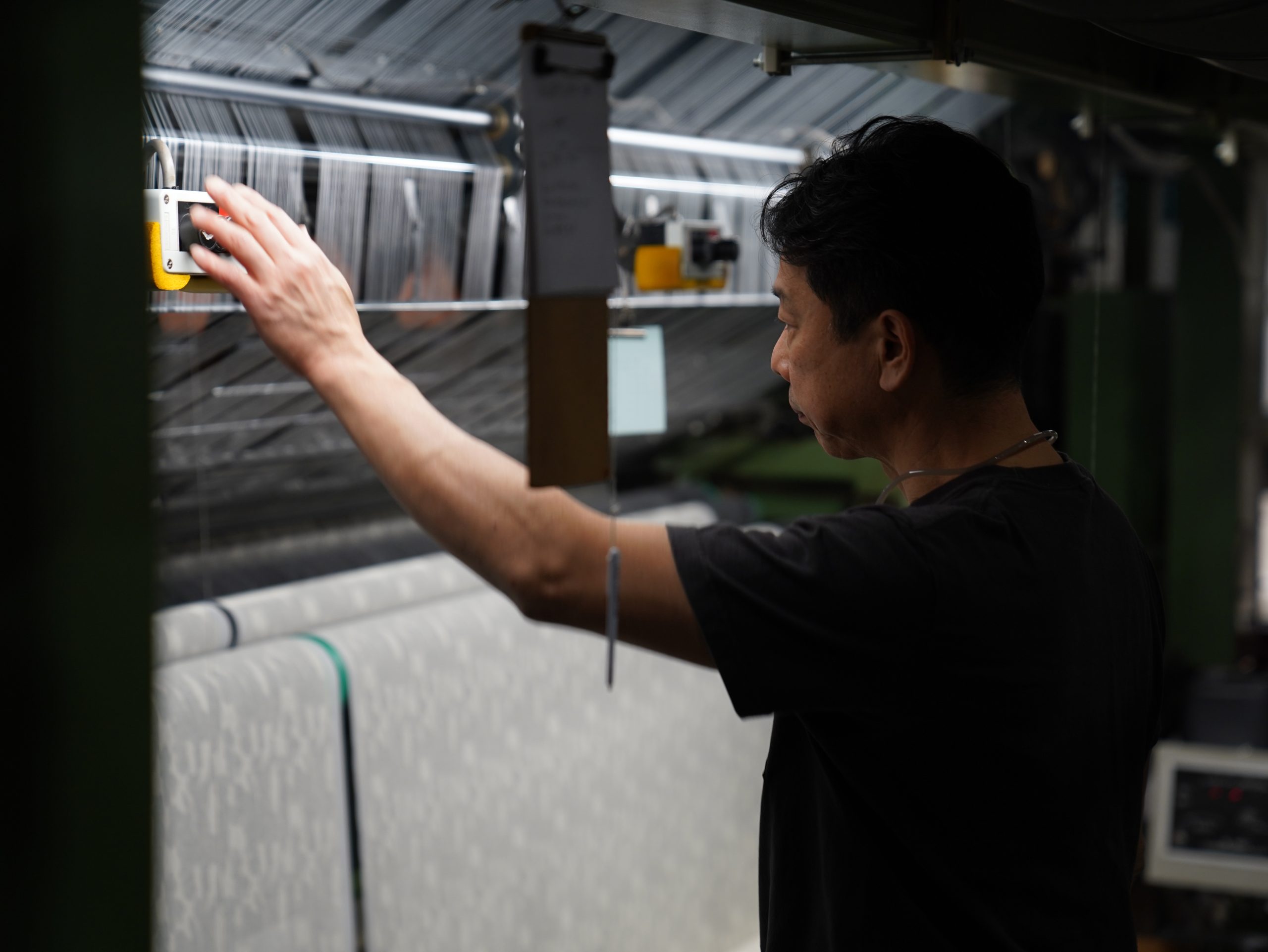 ラッセルレース機は古い分、手間がかかり無人では動かすことが出来ません。一台に一人付きっきりで見守っているようなイメージです。例えると、ラッセルレース機はクラシックカーで、現在主流になっている高速の編み機はスーパーカーになるかと思います。編み込むスピードも、手のかかり方も全く異なります。クラシックカーは日々のメンテンナンスを欠かすとすぐに動かなくなる。部品が壊れることも、エンジンがかからなくなることも、ヘッドライトが付かなくなるようなことも日常茶飯事です。ラッセルレース機でモノづくりをするという事は、日々こうした不具合と向き合うことと同義なのです。