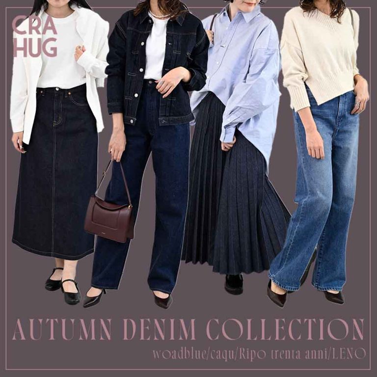 せっかくデニムパンツを穿くなら、スタイル良くみせたい、でも窮屈なのは嫌。そんな気持ちに応えてくれる、〈caqu〉のパンツはほんのりストレッチが効いているので履き心地良く、かつスタイルアップもしてくれます。
