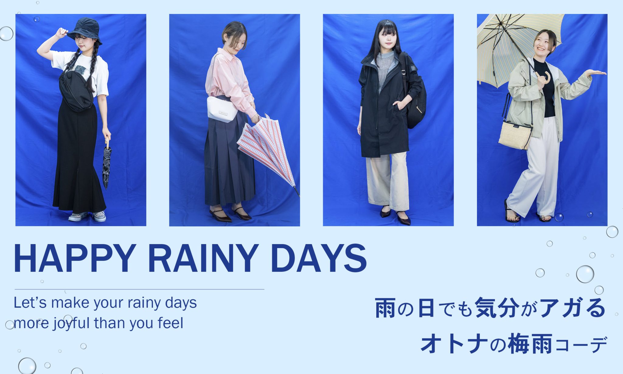 せっかくなら雨の日をおしゃれに、そして快適に過ごせるアイテムを身に付けてみませんか? 今回は雨の日でも心は晴れやかになるようなアイテムをコーデごとにご紹介します。