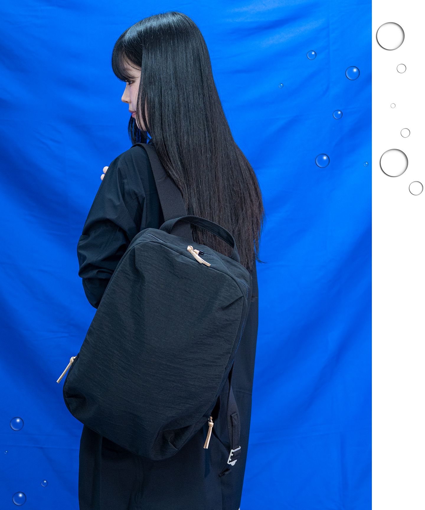 ご心配なさらず。〈NIZYU KANO〉のリュックなら撥水加工が施されているので、多少の雨なら対応可能!軽くて持ちやすくて水も弾いてくれるアイテムです。