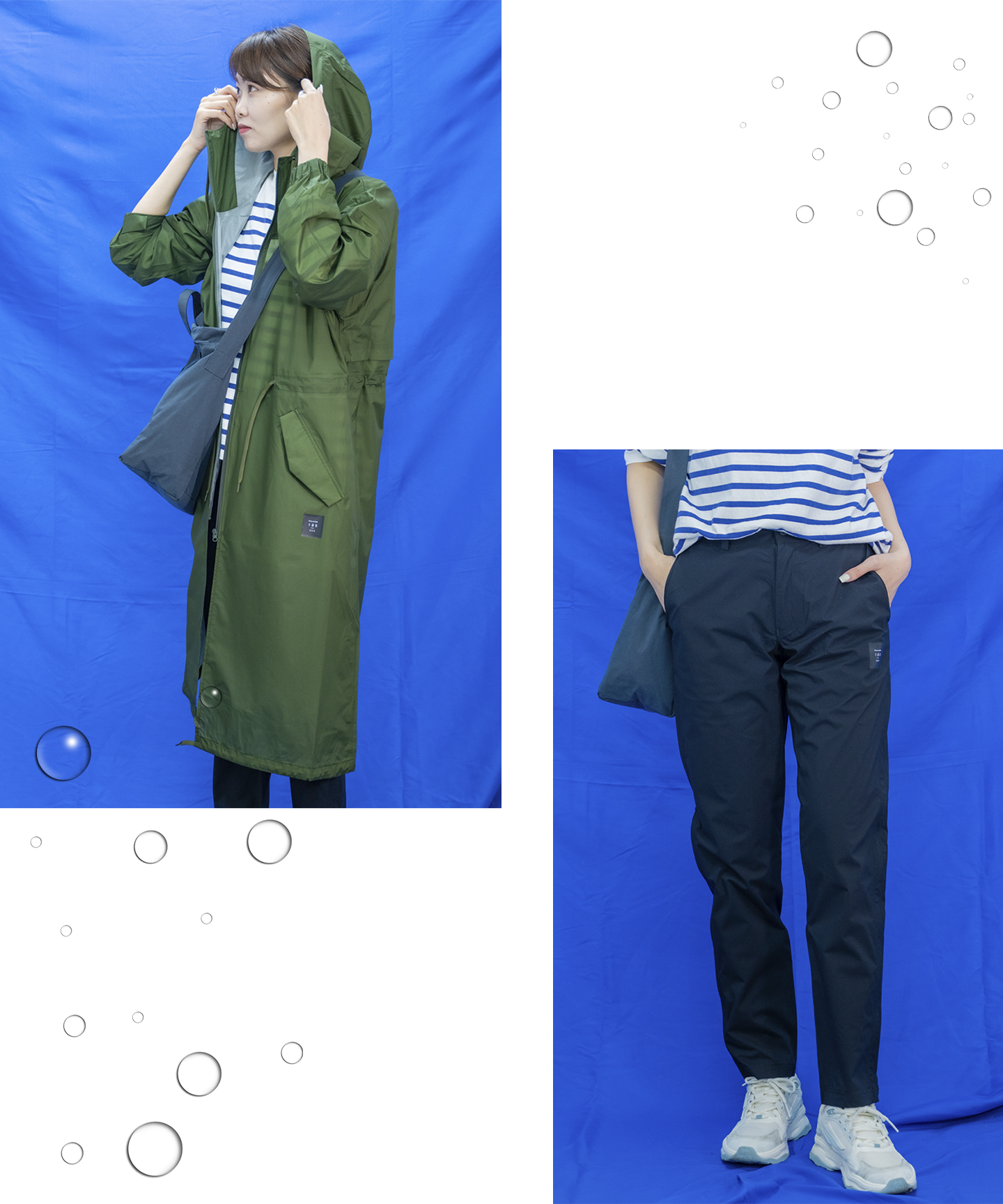 雨が降るだろうと予測出来ている時には、〈F/ACSION〉の“おしゃれ”な防水コーデがおすすめ。雨なんて怖くない!!