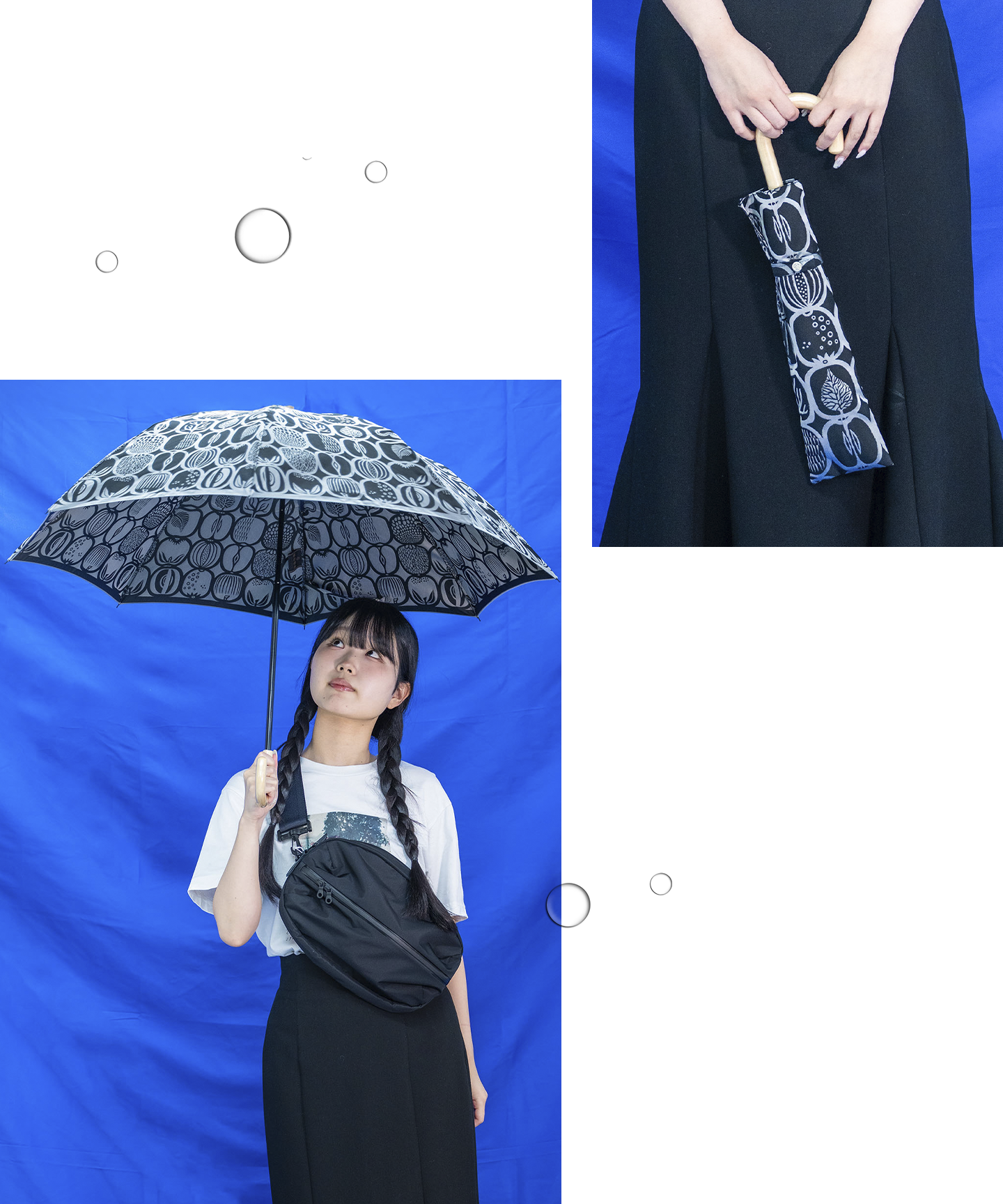 雨が降りそうなときには、折り畳み傘一択!〈槇田商店〉の傘は、デザイン性抜群なので、コーデのワンポイントとしても取り入れやすいです。