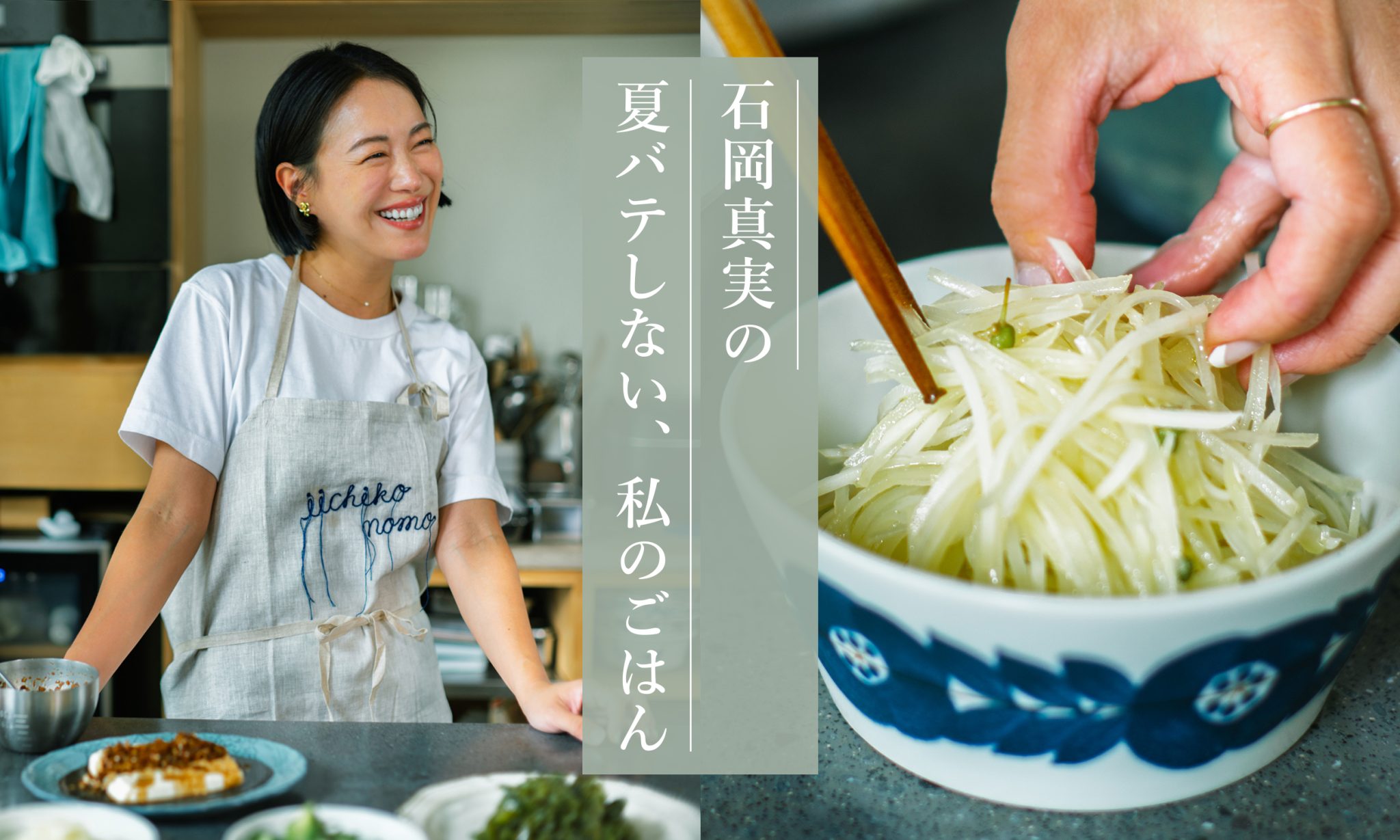 暑さに負けず、ごはんを楽しむためのコツ。そして、ほんのちょっとのひと手間で、暮らしが整うヒント。 今回は、そんな石岡さんの“夏のごはん”の知恵を、自宅キッチンから届けます。