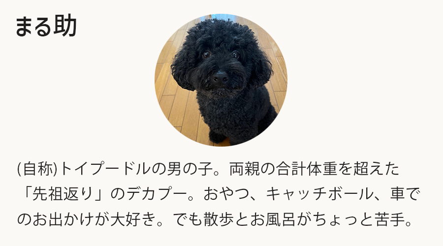 僕は「まる助」。ふわふわの(自称)トイプードルだよ。