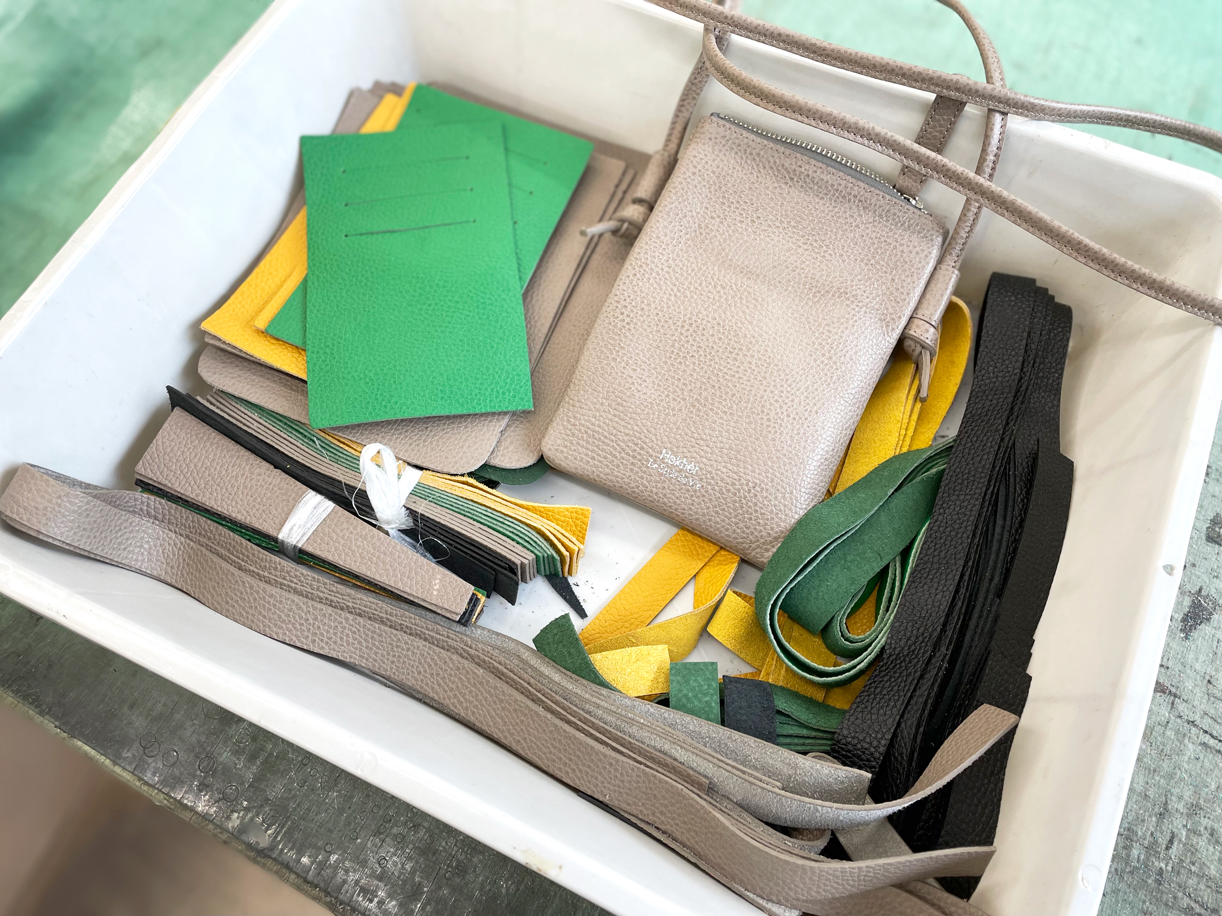 磯部さん:私がMDをしていた時代に、一番協力的にそのPBを作ってくださっていた担当の方にお願いしています。 2020年の秋ぐらいに、彼にもう一度連絡を取って、実はバッグのブランドを立ち上げたいので力を貸してくれますか?と尋ねました。二つ返事で磯部さんのためだったら、一肌でも二肌でも脱ぎますよと言っていただきました。最初は工場にあった革で仮に作ってみようかと、ゼロからたたき台を作っていただきました。そして、すごく小さい発注から協力をしていただきました。 ブランド立ち上げからずっと支えてくれている大切なビジネスパートナーです。