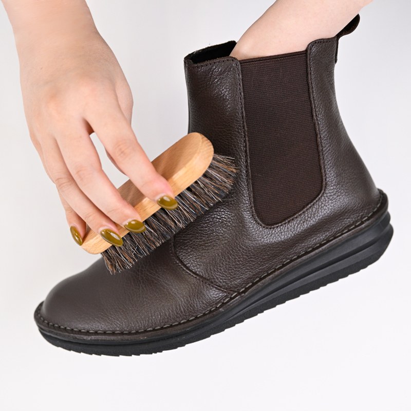 仕上げにブラシをかけると、自然なツヤが生まれ、革がしっとりと息を吹き返します。