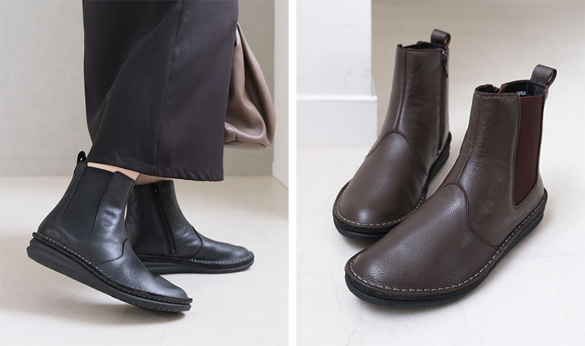 高級感があり、いつものコーデをさりげなく格上げしてくれる本革のブーツ。 履くほどに足に馴染み、ツヤや表情が変化していくのも、本革ならではの魅力です。