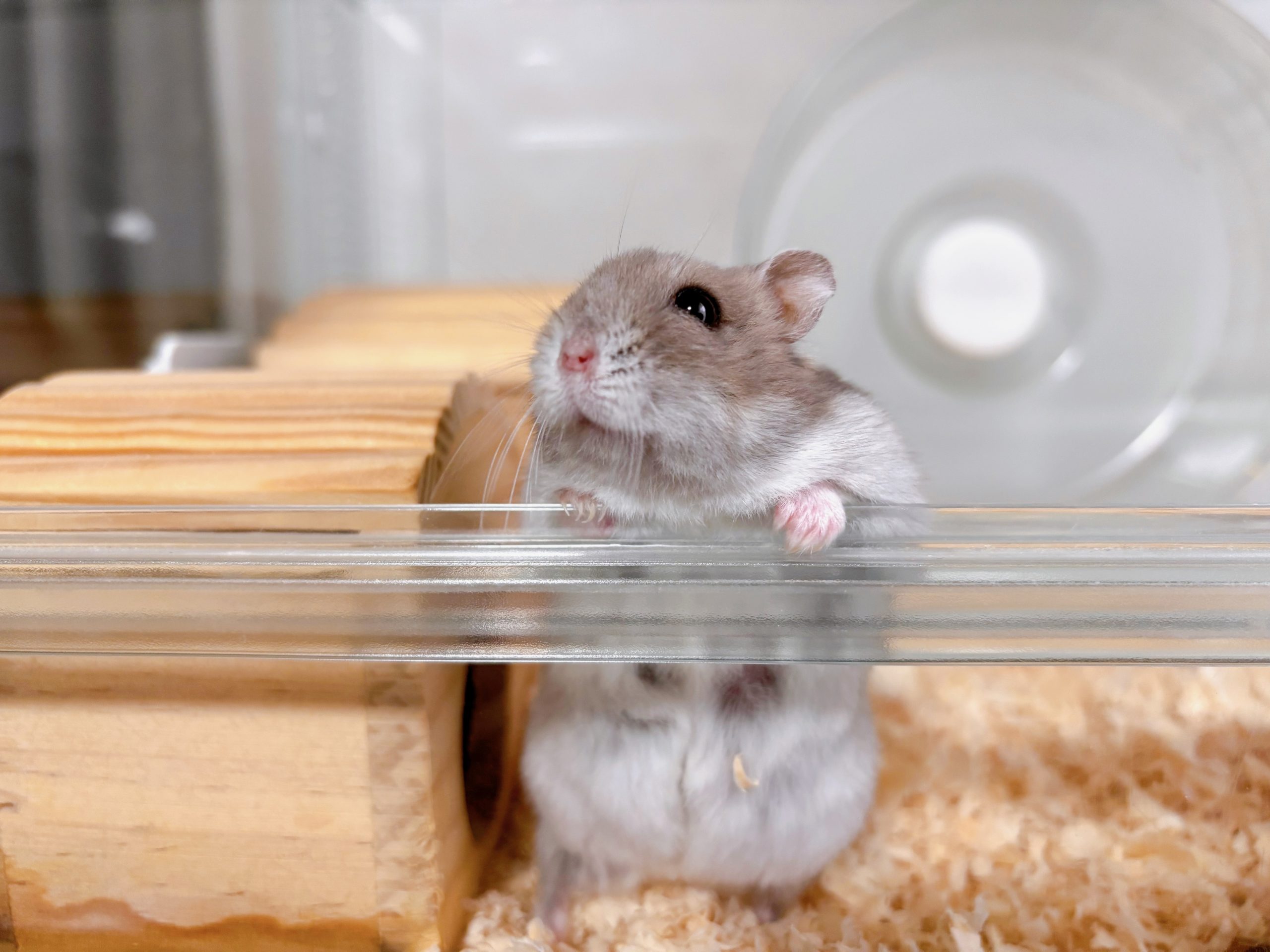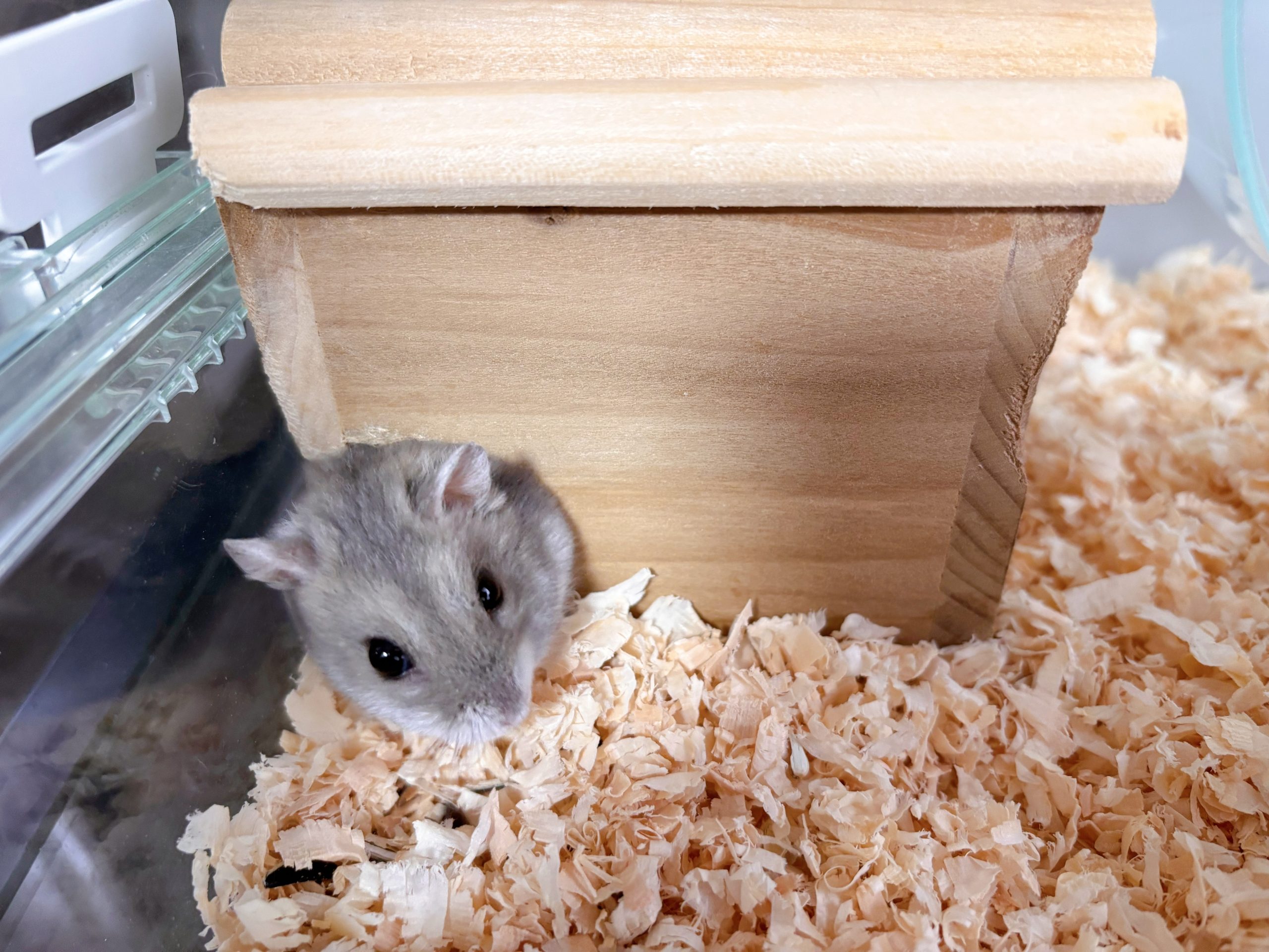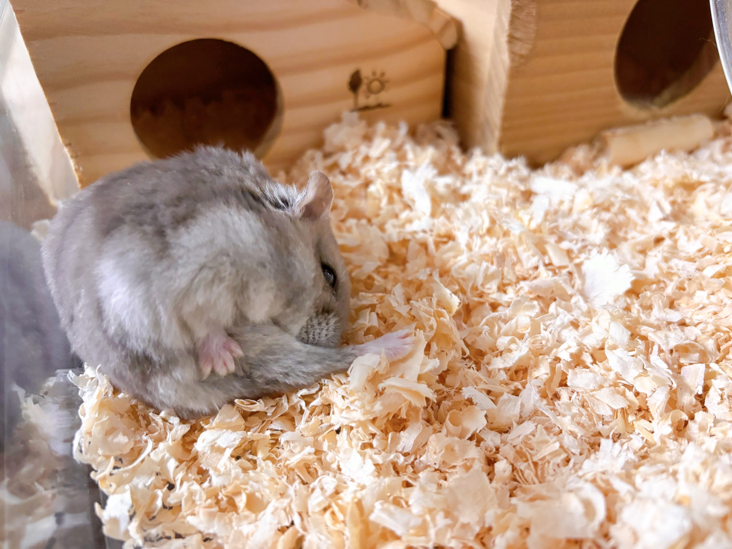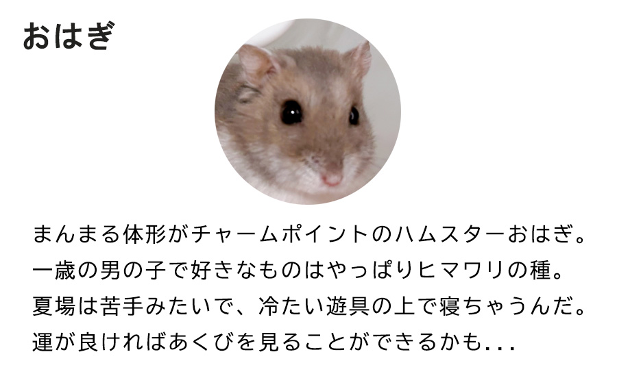 まんまる体形がチャームポイントのジャンガリアンハムスター「おはぎ」。 一歳の男の子で、好きなものはやっぱりヒマワリの種。
