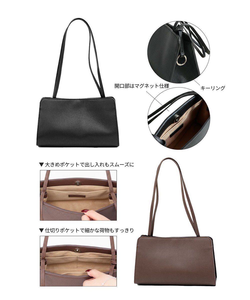 内側には、大きめのポケットを片側にひとつ、反対側には小物が仕分けやすい2つのポケットを配置。 必要なものが迷子にならず、「使いやすさ」もきちんと考え抜かれたつくりです。
