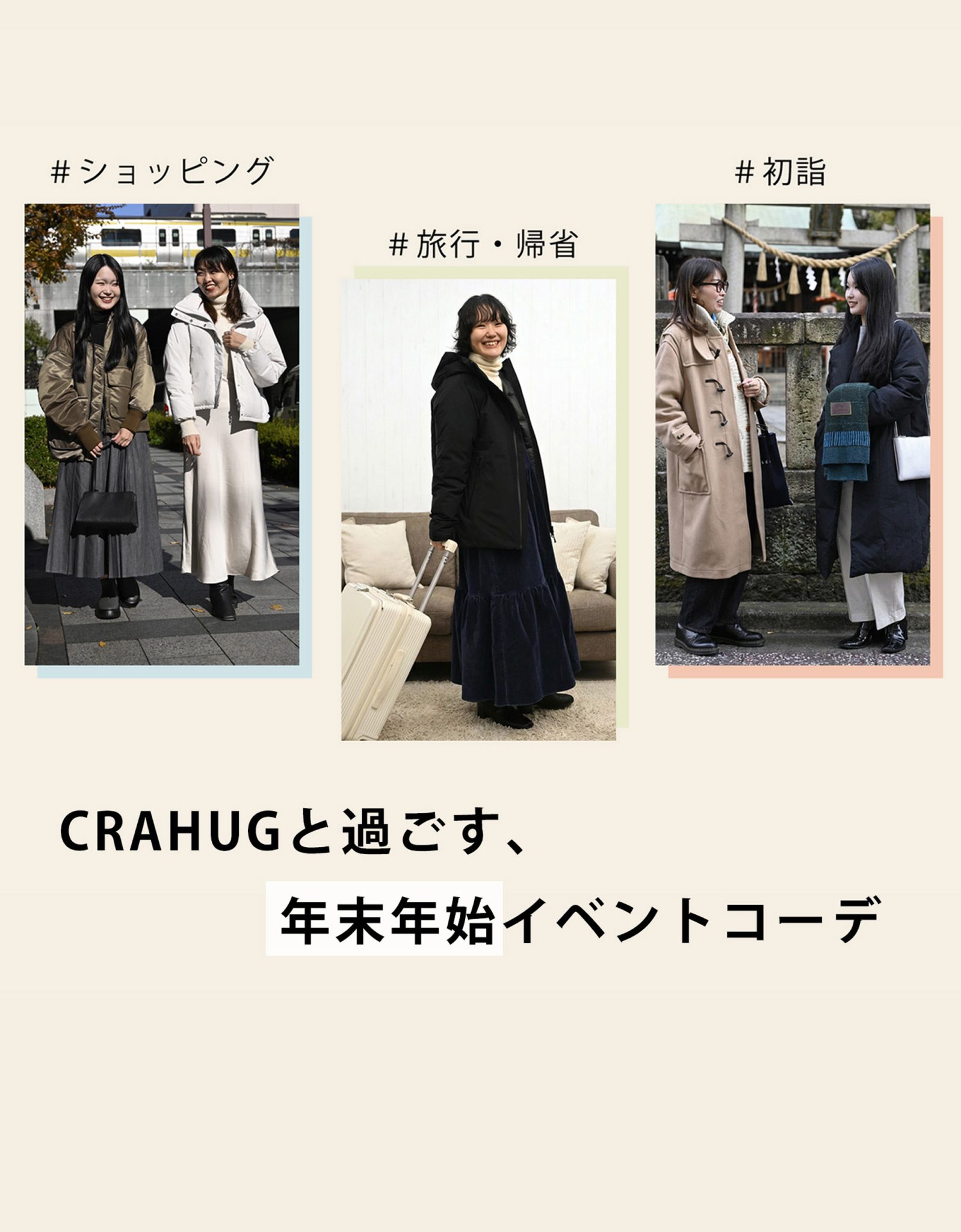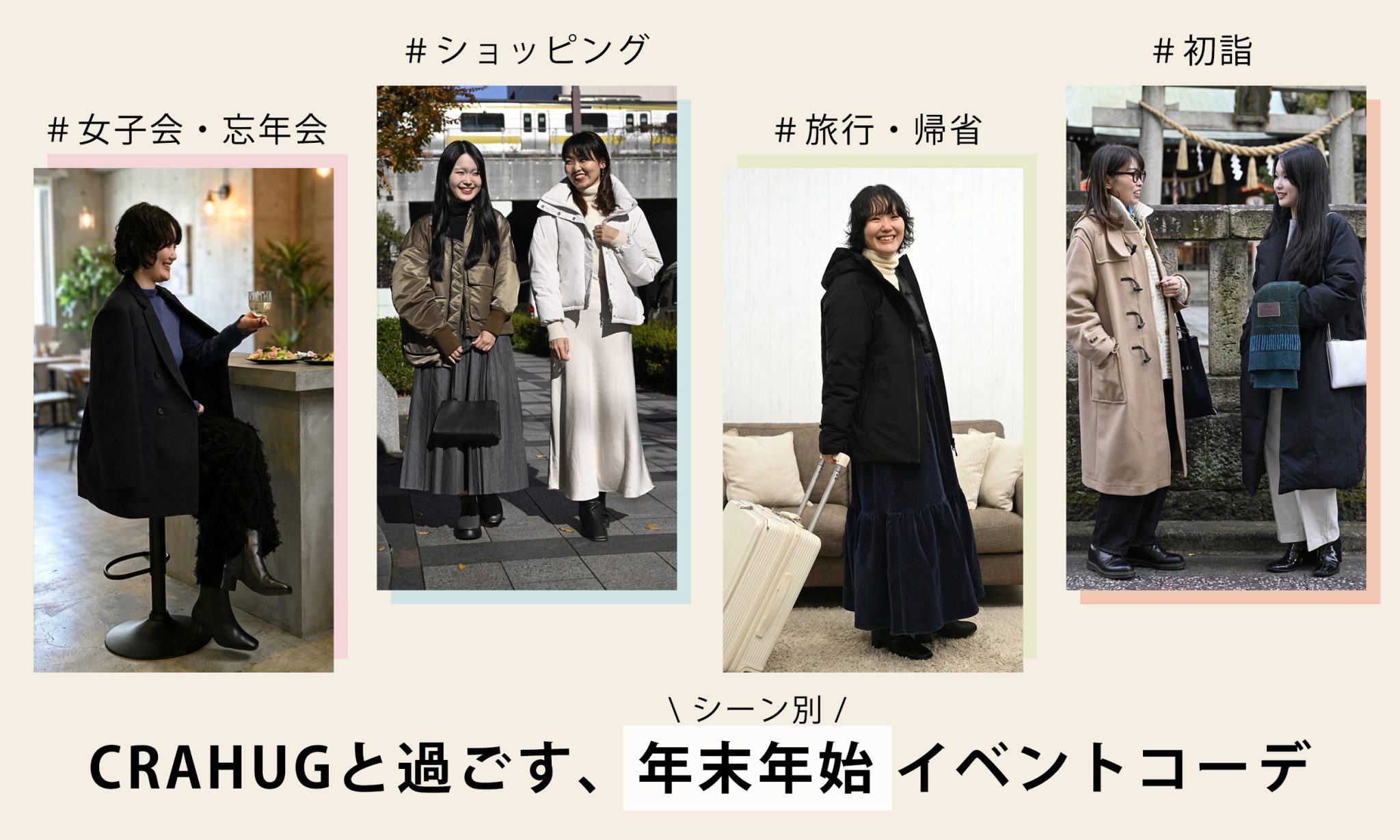 この冬のイベント、何を着て行こう? 永く寄り添ってくれる日本製のアイテムでこの冬のコーデちょっと特別に。 CRAHUGから年末年始のシーン別イベントコーデをお届けします。