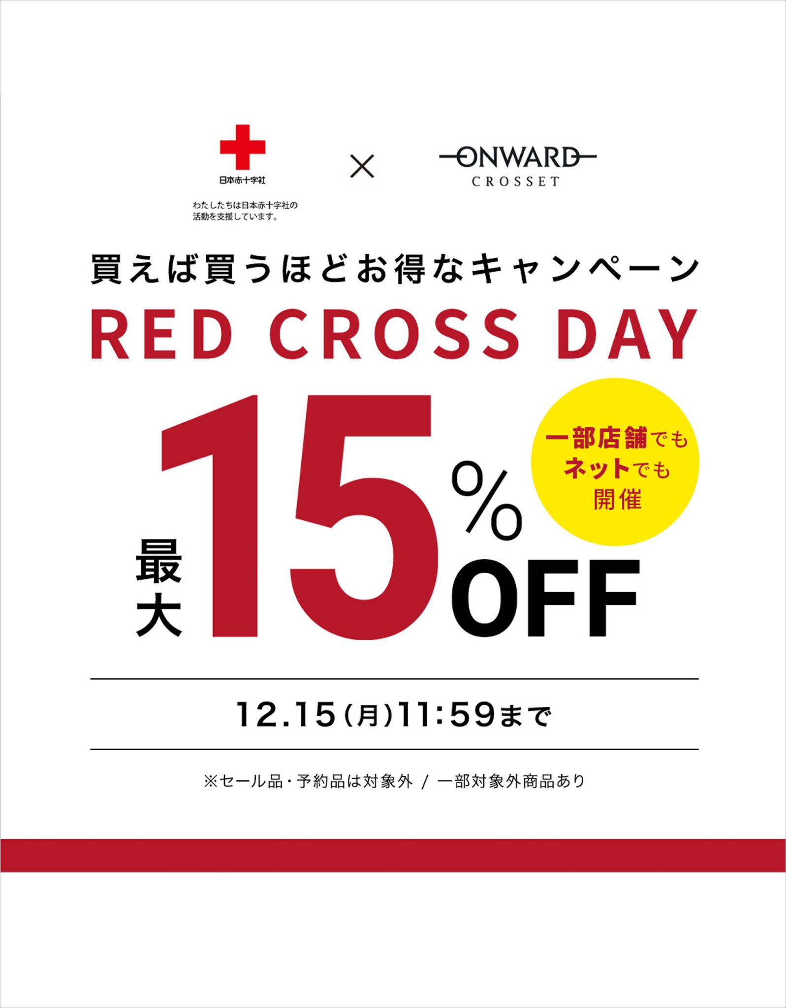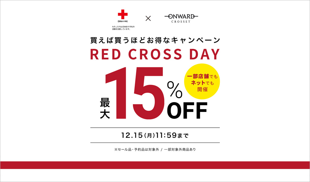 12月11日(木)正午より、 今すぐ着たい冬の新作アイテムが 最大15%OFFでお求めいただけるお得なキャンペーン 【RED CROSS DAY】を開催中!