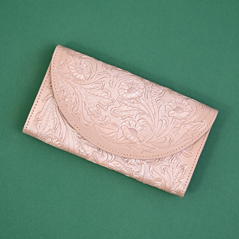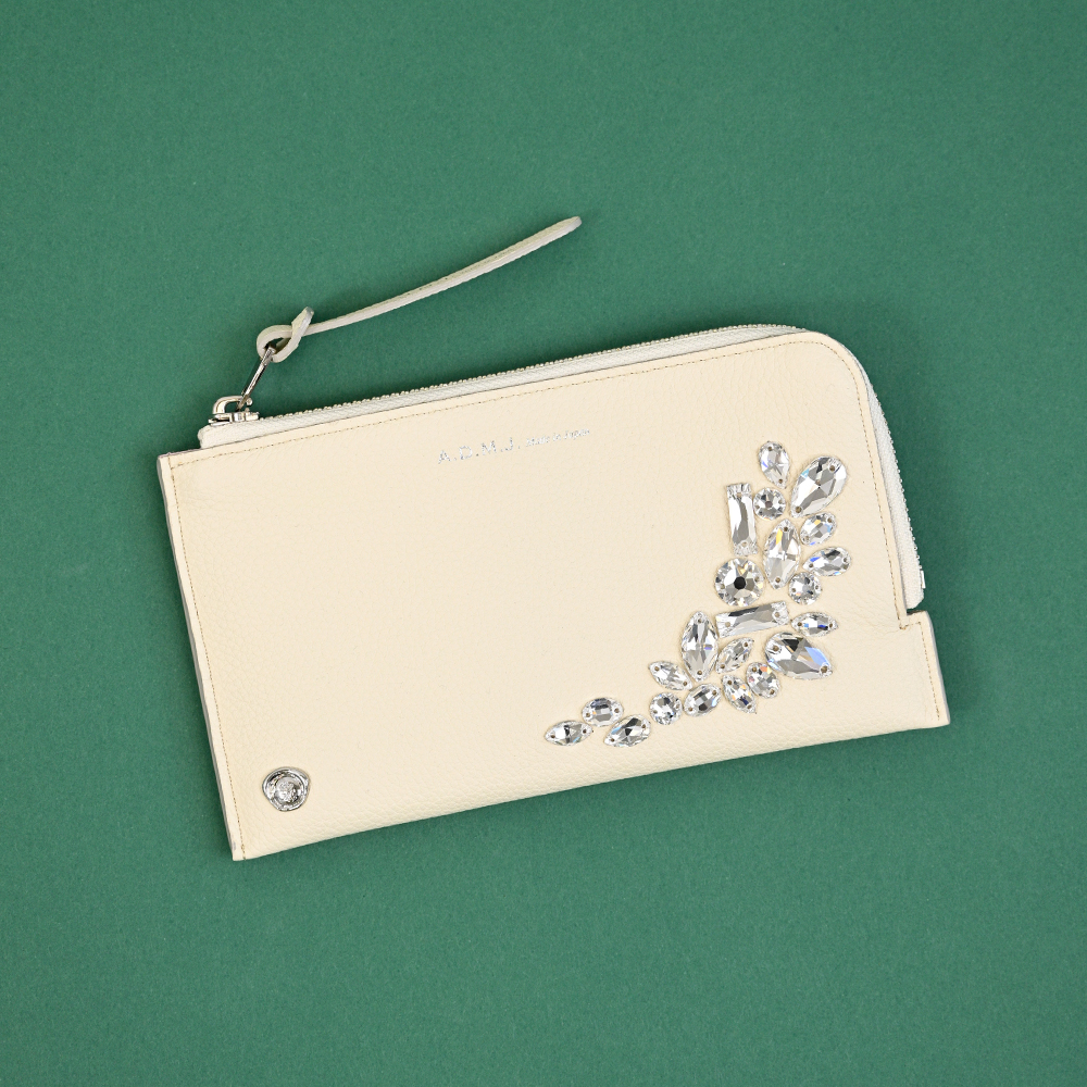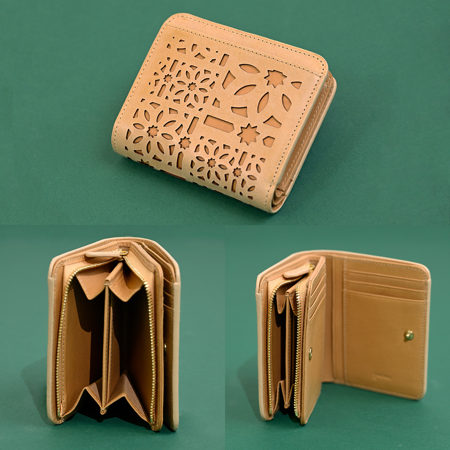 カットワークを繊細に施した、モダンでアイコニックなウォレット。ホワイトワックス仕上げのイタリアンレザーが生む奥行きある陰影が、洗練された存在感を引き立てます。仕切りやポケットも充実し、機能美とデザイン性を兼ね備え、持つ人の“自分らしさ”を装いに添えてくれます。
