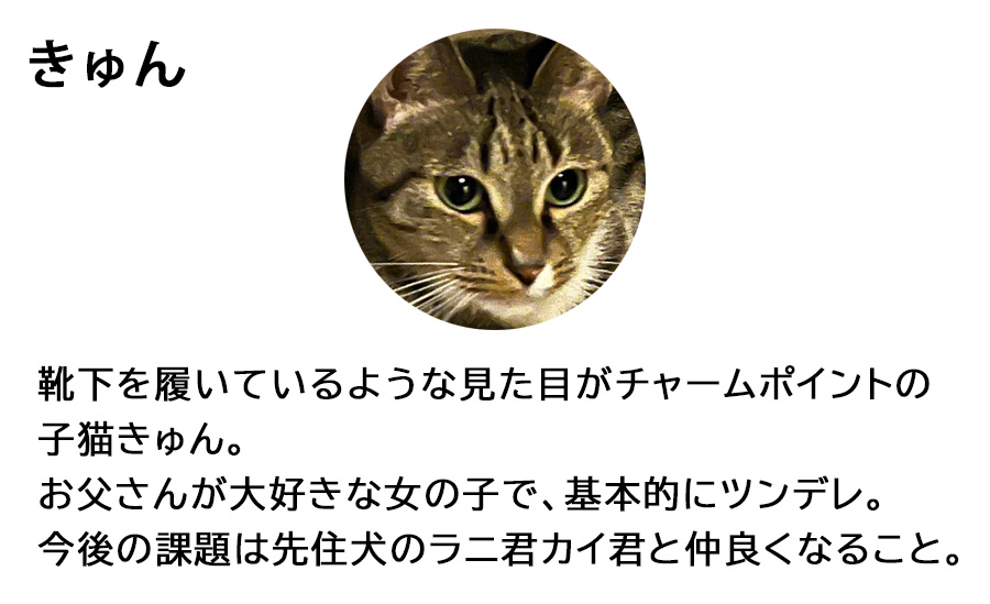 靴下模様の可愛らしい足がチャームポイントの子猫きゅんちゃん 街で鳴いているところをお出迎えしたので年齢は不明なミステリアスな女の子なんです。 玄関で帰りを待つぐらいお父さん大好きっ子ですが、お父さん以外にはツーンとしているThe猫。 今回はそんなツンデレ子猫、きゅんちゃんの様子をご紹介いたします。