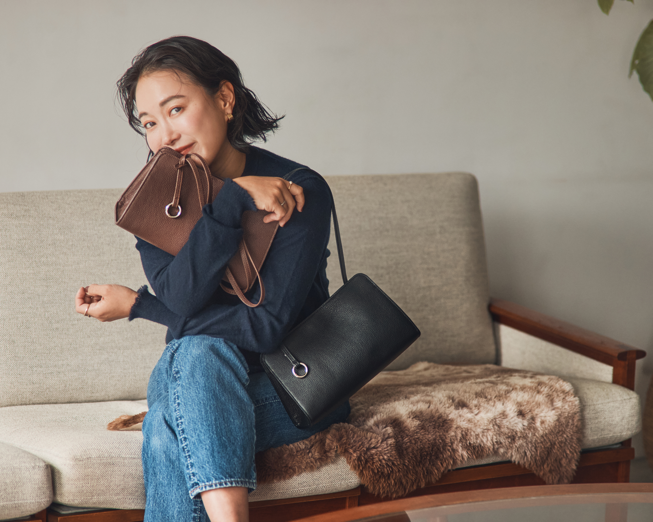 CRAHUGアンバサダーの石岡真実さんと〈MORROW by thank〉がコラボして生まれたミニマムバッグ。石岡さんの「こんなバッグが欲しい!」が詰まったバッグ。