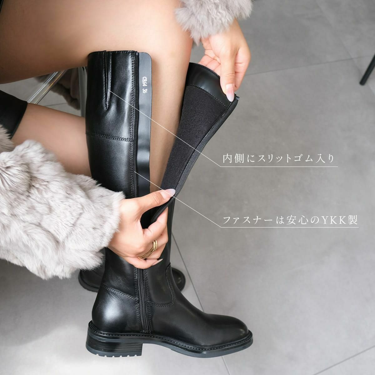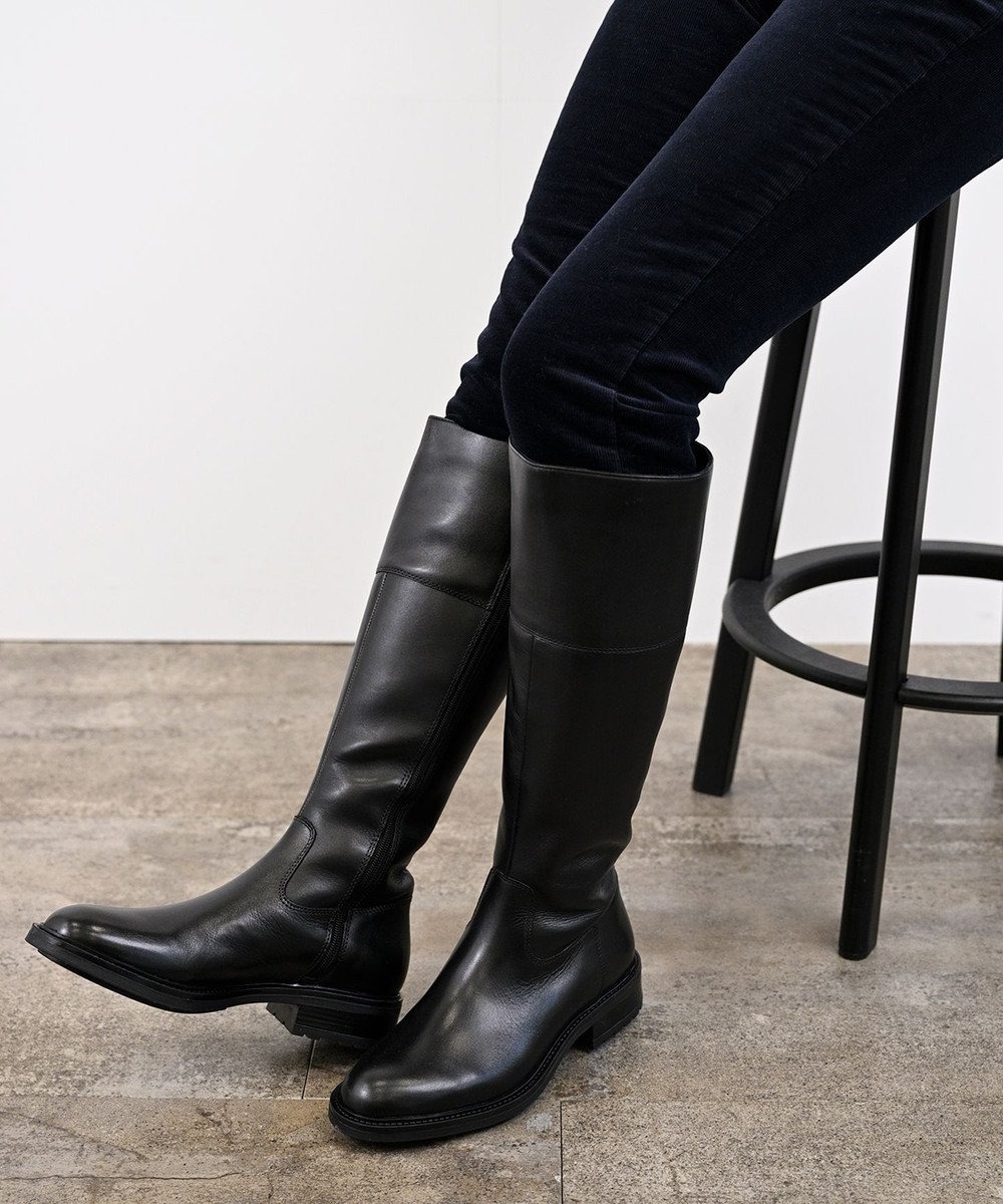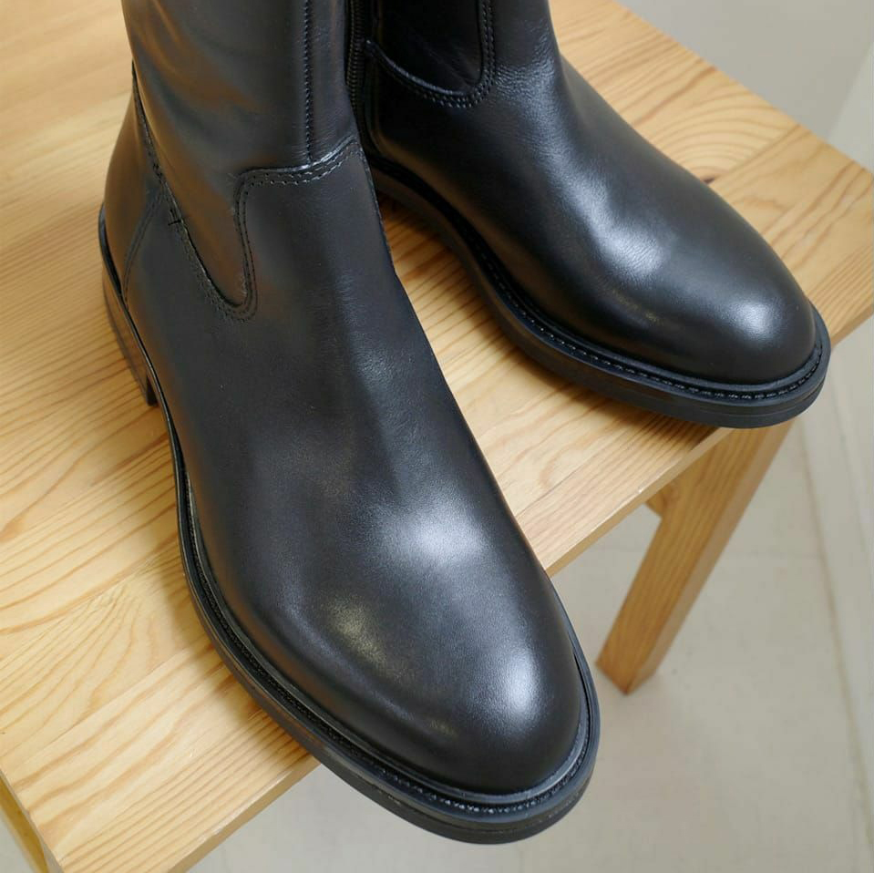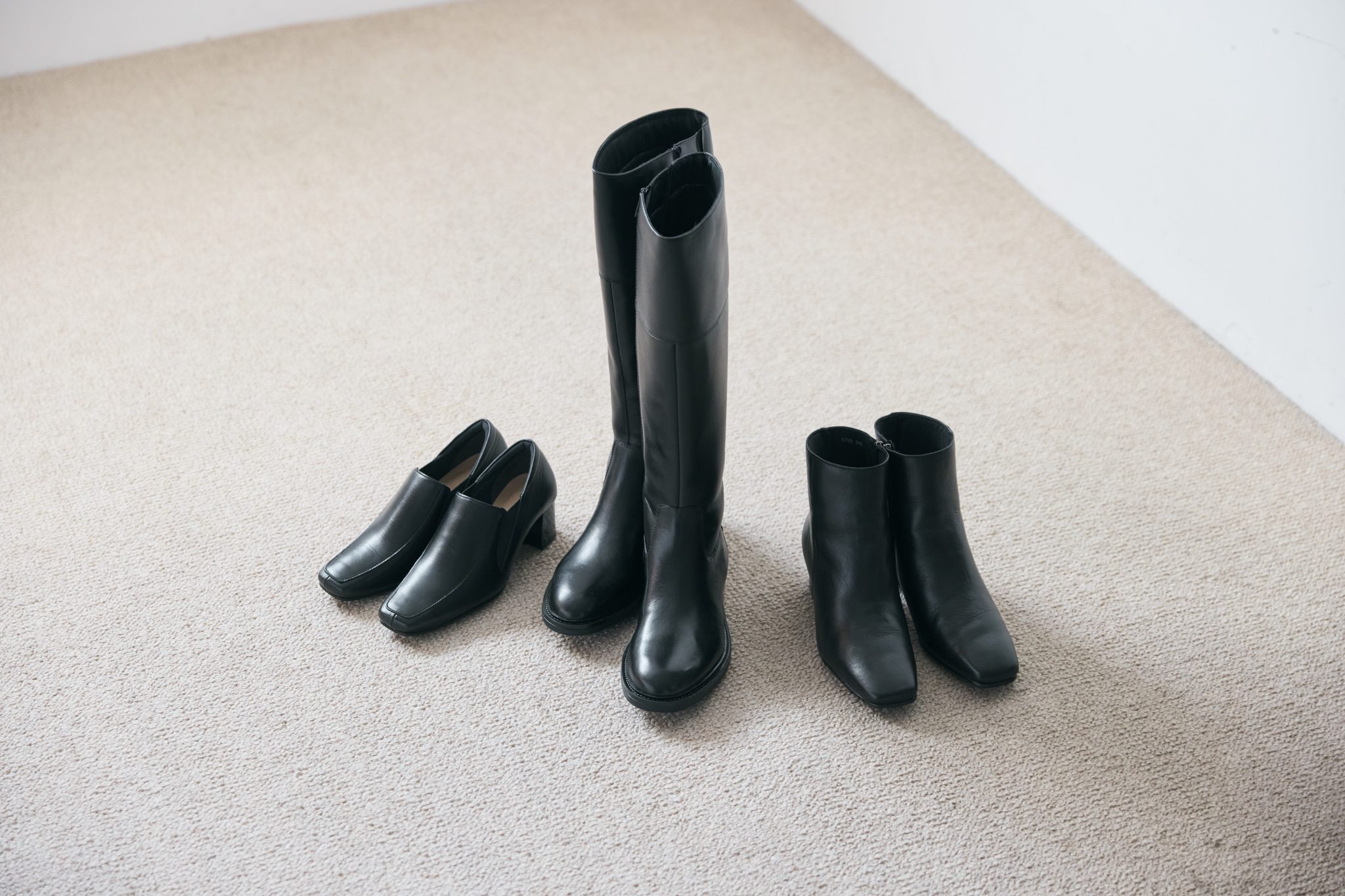 「本革ベーシックロングブーツ」は、合わせるアイテム次第で印象が大きく変わるのも魅力のひとつ。 スカートやワンピースと合わせれば、足元にほどよい重さが生まれ、冬らしい落ち着きのある装いに。タイツやソックスとのレイヤードを楽しめば、防寒とおしゃれを両立できます。
