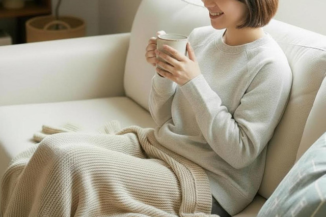 靴下や手袋で手足の末端を温めると、全身の血行がスムーズになり、冷えの改善に効果的。外出時はもちろん、家の中でも取り入れやすい手軽な温活で、体の芯までぽかぽかしやすくなります。