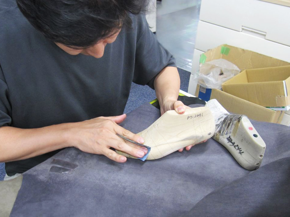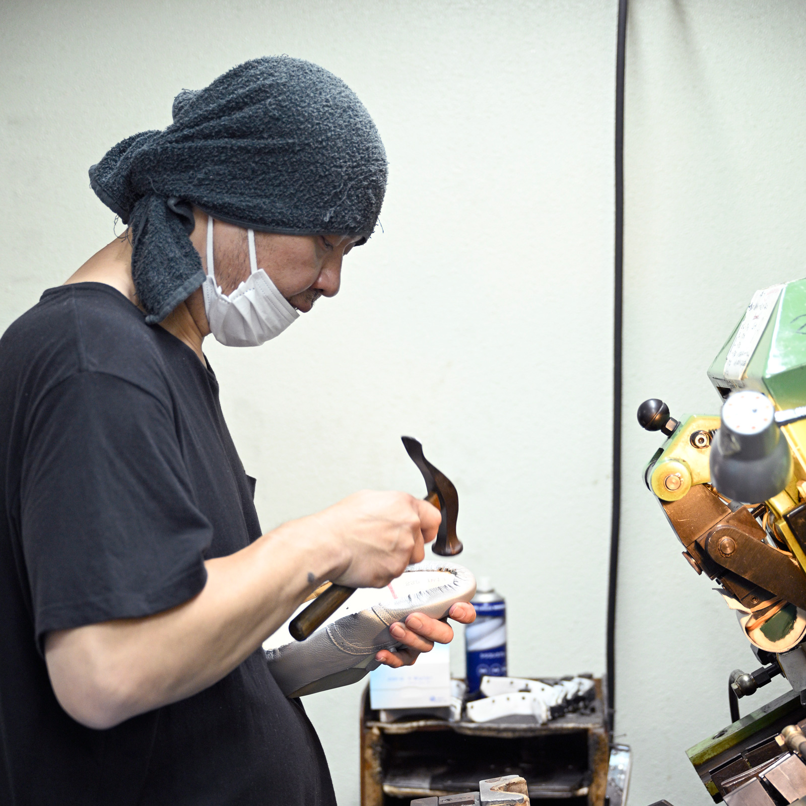 安田さん:最初に1人が全ての工程を一貫して靴を仕上げます。そのため、完成した商品には手掛けた人の雰囲気や佇まいが現れていると思います。 また、木型の段階からこだわることで、<Pointer>の履き心地はこれだ!というものが出来上がるので、ものづくりに関わる社員たちには履き口からつま先までの感覚を合わせていきます。何度も修正をかけることもあるので、その時は僕が実際に手を動かして共有します。靴はパーツも工程も多いからこそ、根性というか、向き合うしぶとさが必要です。この姿勢が、今まで生き残ってきた理由でもあると感じます。