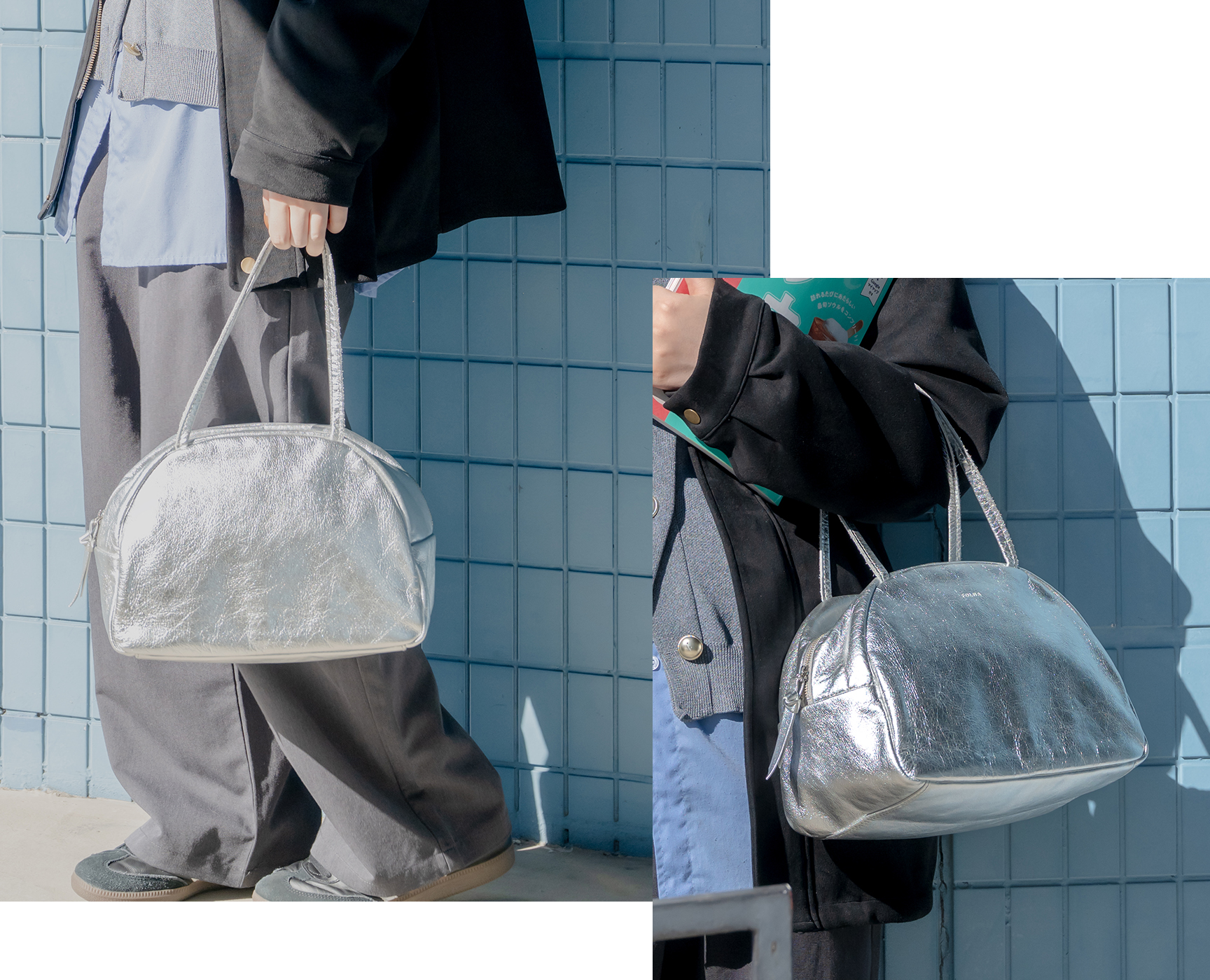しっかりマチのあるボストンバッグは必需品+αの収納ができるので旅行にも最適です。 初日と二日目で服装が変わっても合わせやすいシルバーカラーも◎