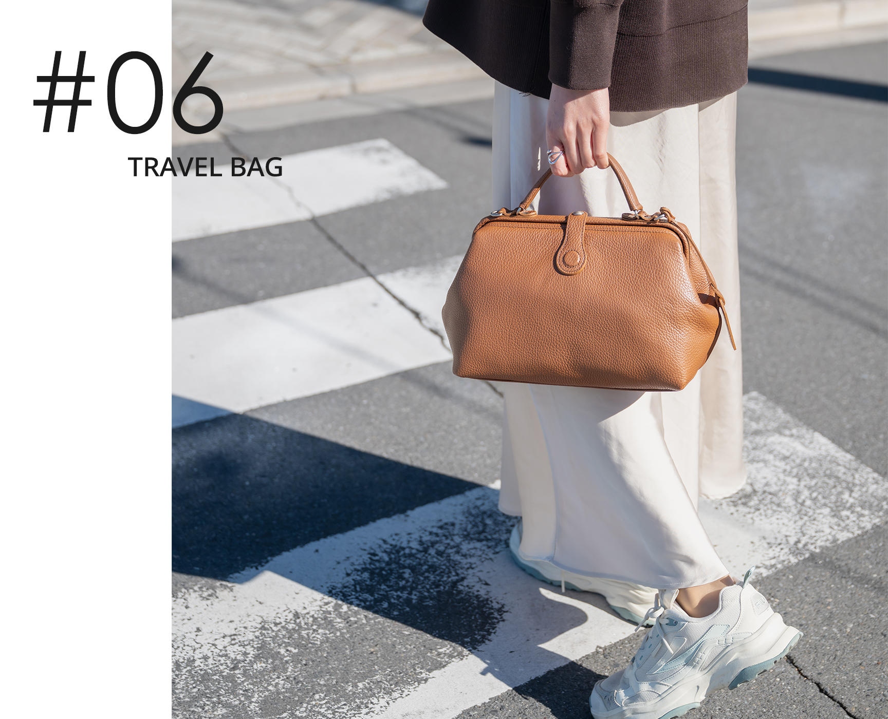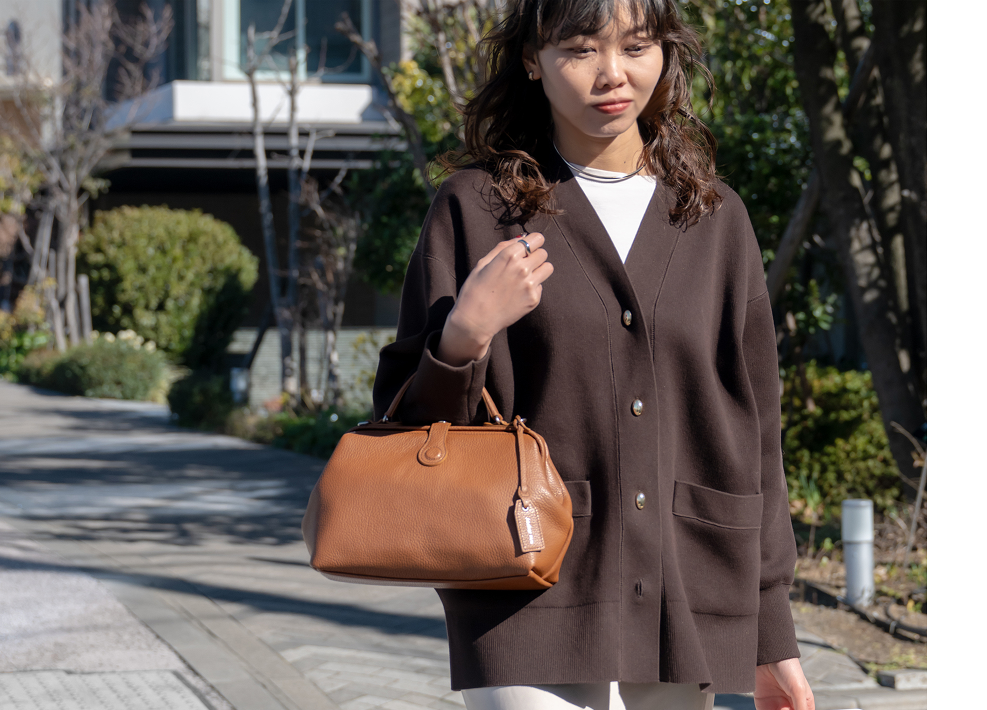 初めての街歩きは、新鮮で発見がたくさん。 本革の日本製バッグはきちんと感があって、旅の頼もしい相棒に。 ダレスバッグは口が大きく開くため、中が見やすく出し入れもしやすい仕様。