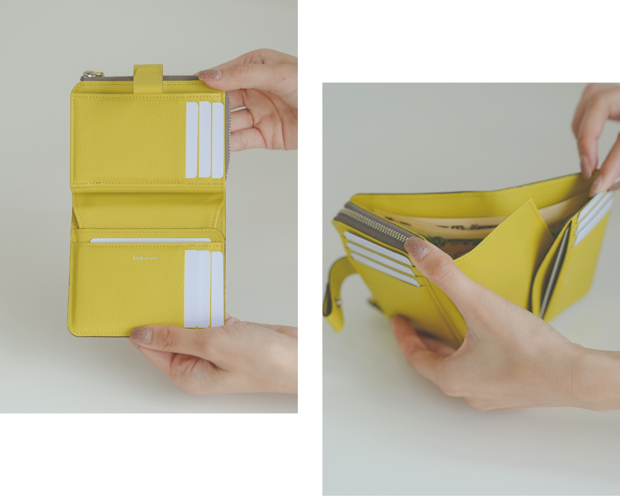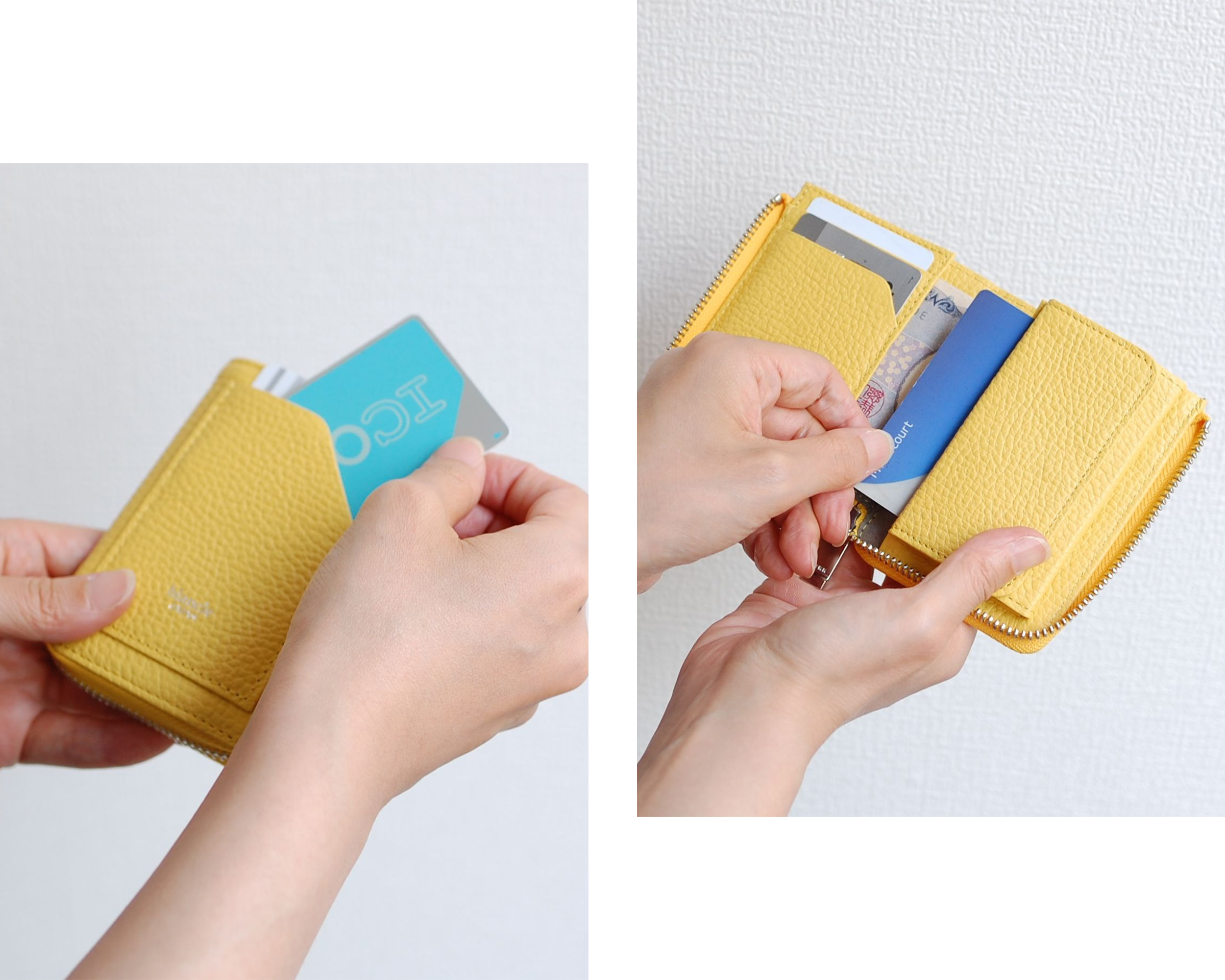 見た目以上にしっかりと小銭や札、カードがしっかり入るよう工夫されています。