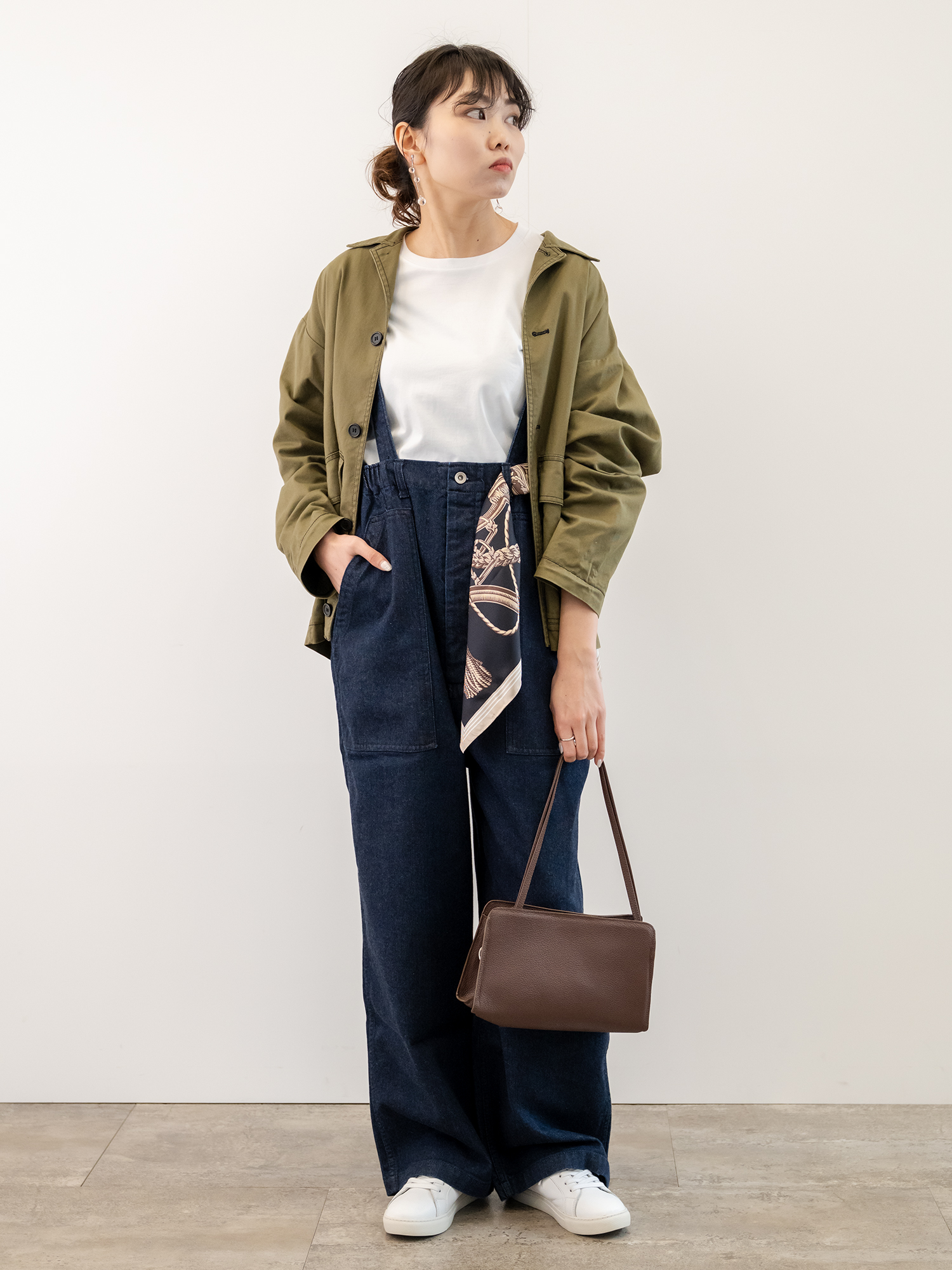 ルーズワイドシルエットのサロペットデニム。取り外し可能なショルダーストラップ付で、サロペットスタイルにもワイドデニムにもなるので着こなしの幅が広がります。ボディラインを拾いにくい太めのシルエットも嬉しいポイントです。