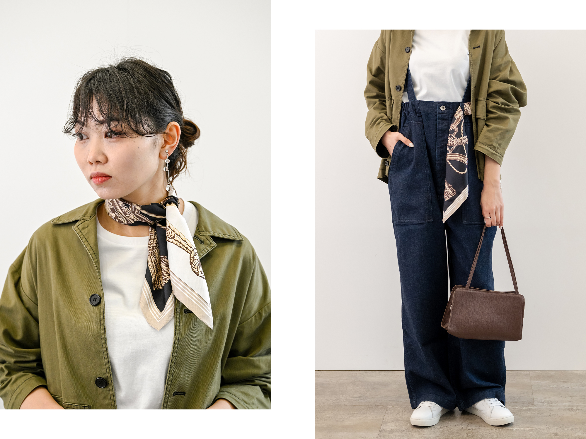 大人なアイテム、スカーフをコーデに添えてご紹介!