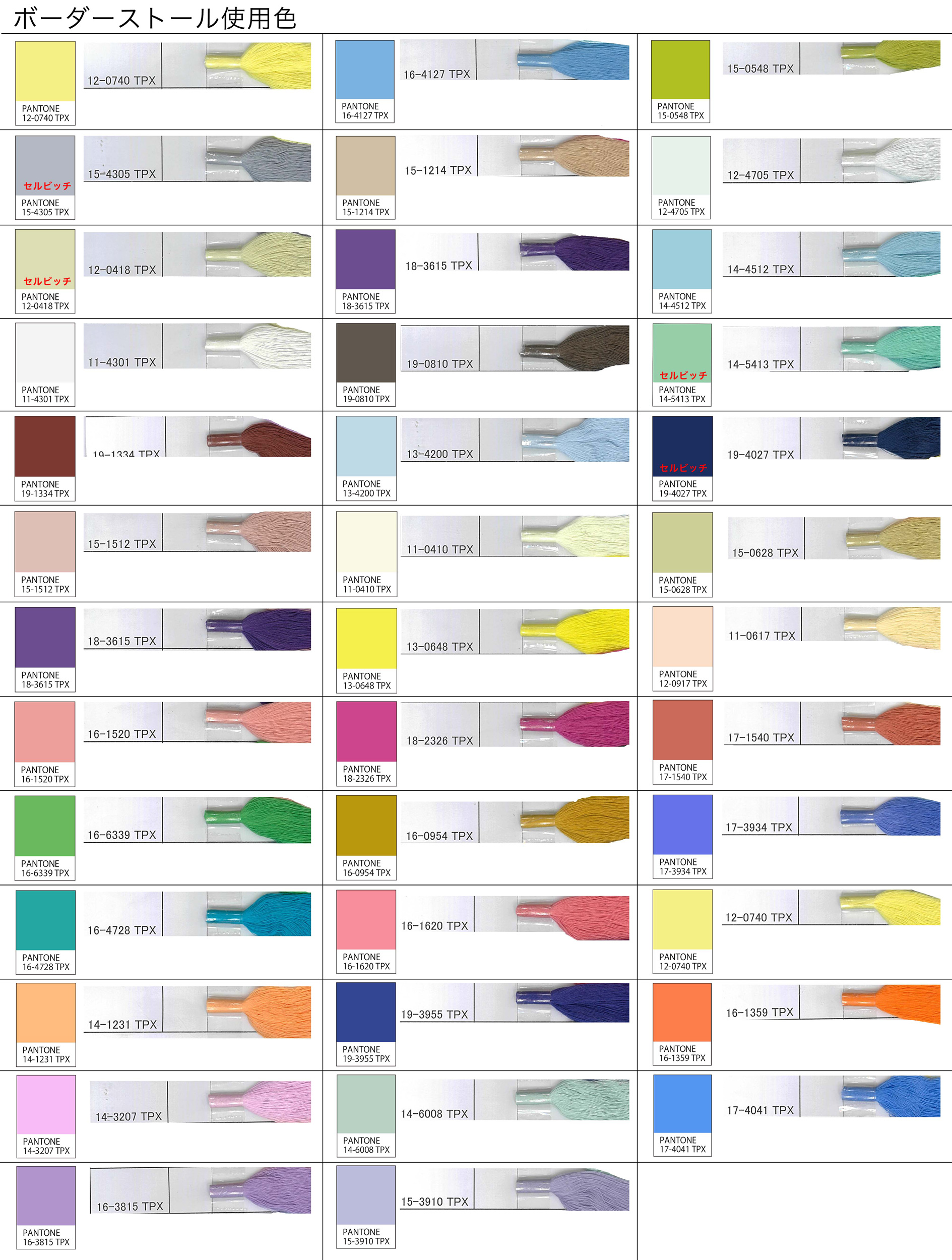 もう1つ、ひっそりこだわっている部分として、デニムのセルビッチ(生地のミミと呼ばれている布端のこと)を参考にしてストールの端にポイントカラーを入れています。顔まわりにクルっと巻いた時、この端のカラーがアクセントになります。1色多くなるだけでも生産は大変ですが、デザインのオリジナリティとして、ワンポイントカラーにこだわっています。